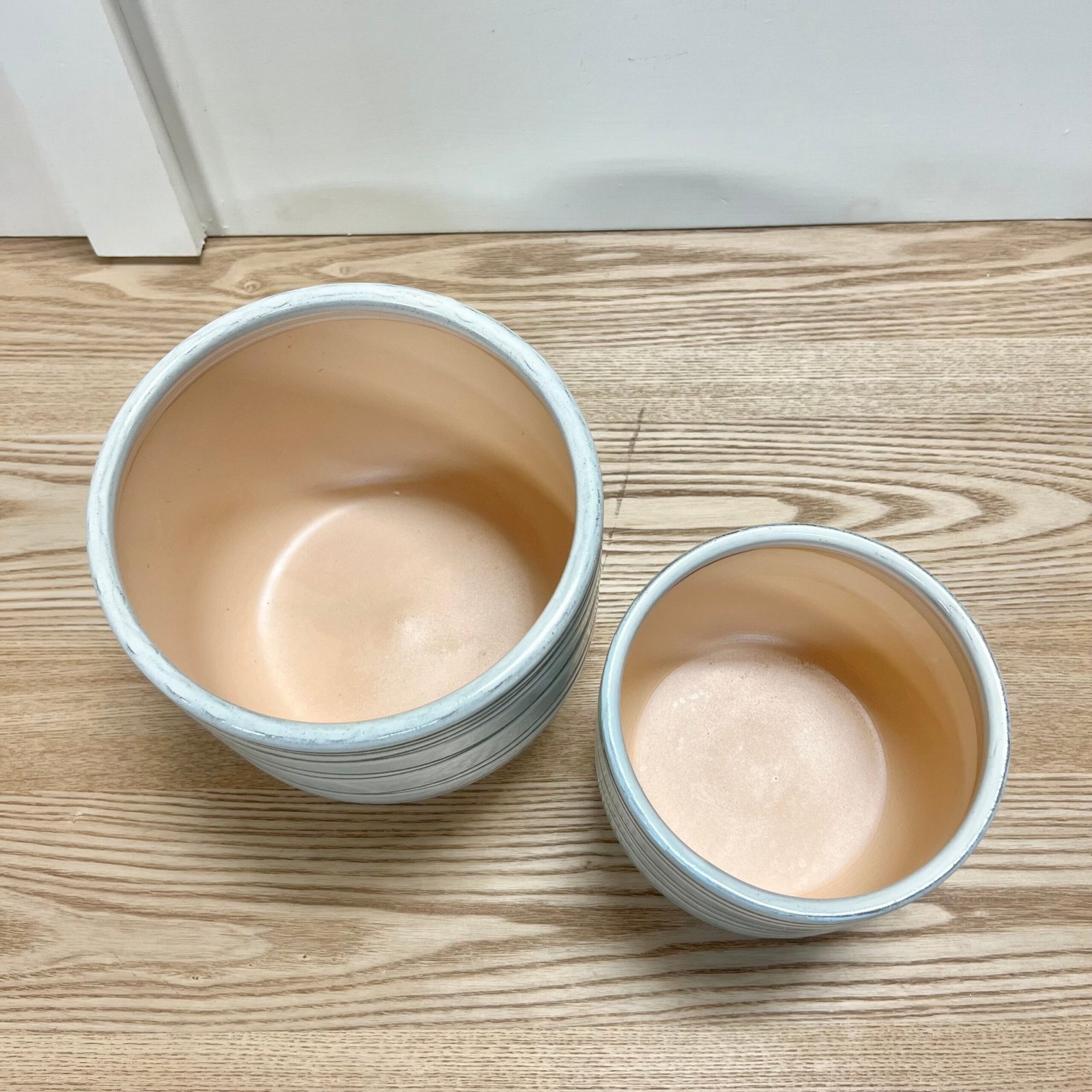 Ceramic, footed planters; set of 2.