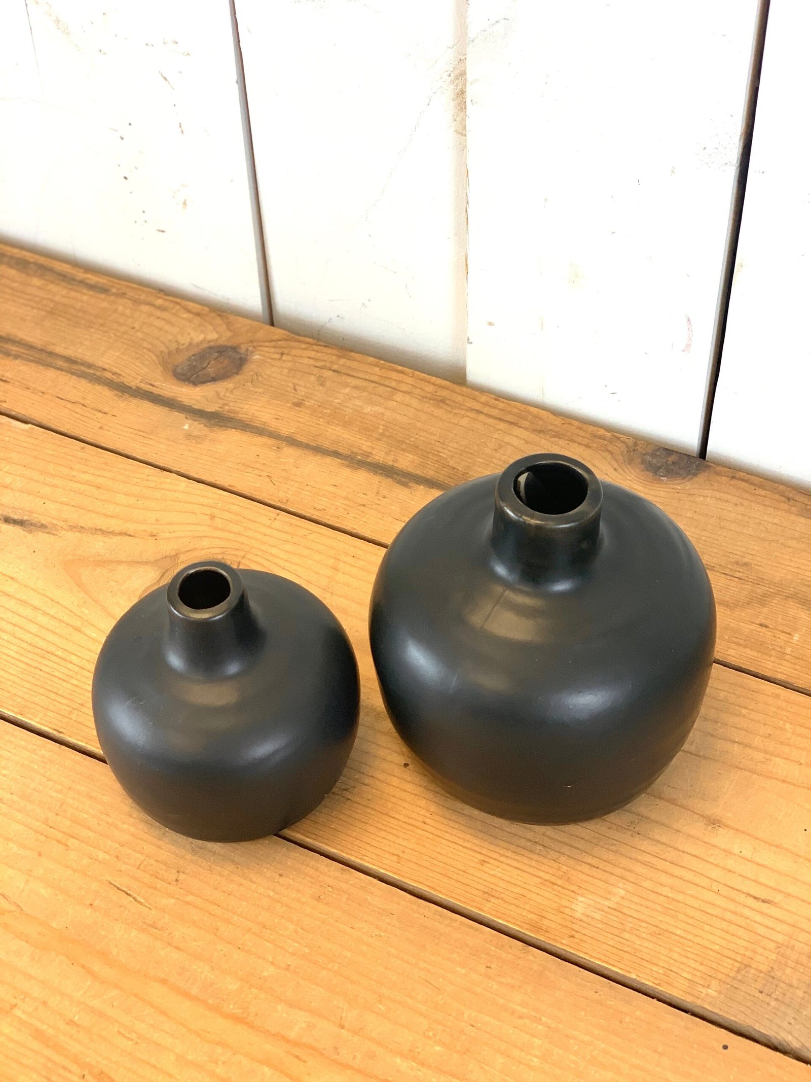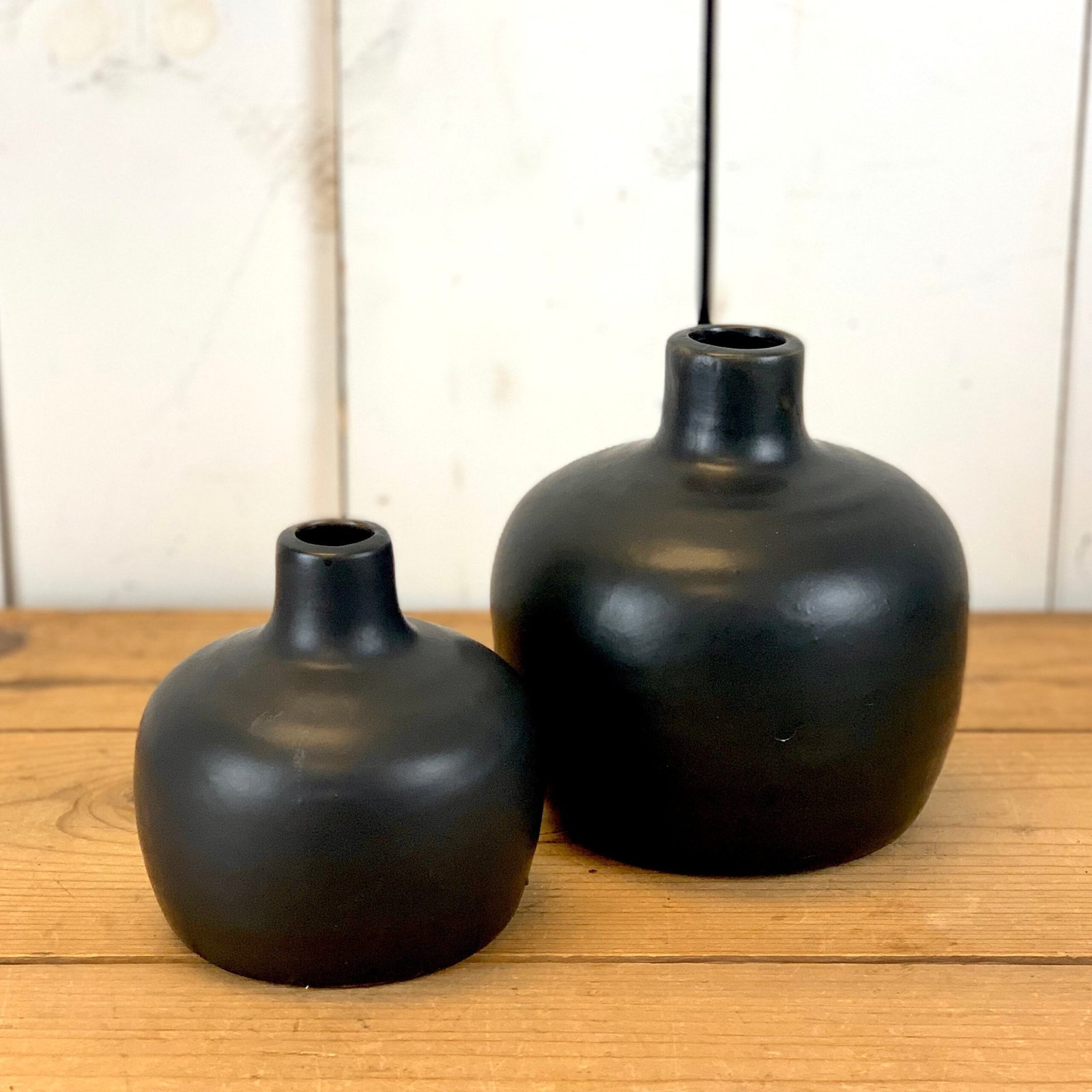 These stunning matte black vases would be great on a book shelf, or in a tray design! Sold separately.
