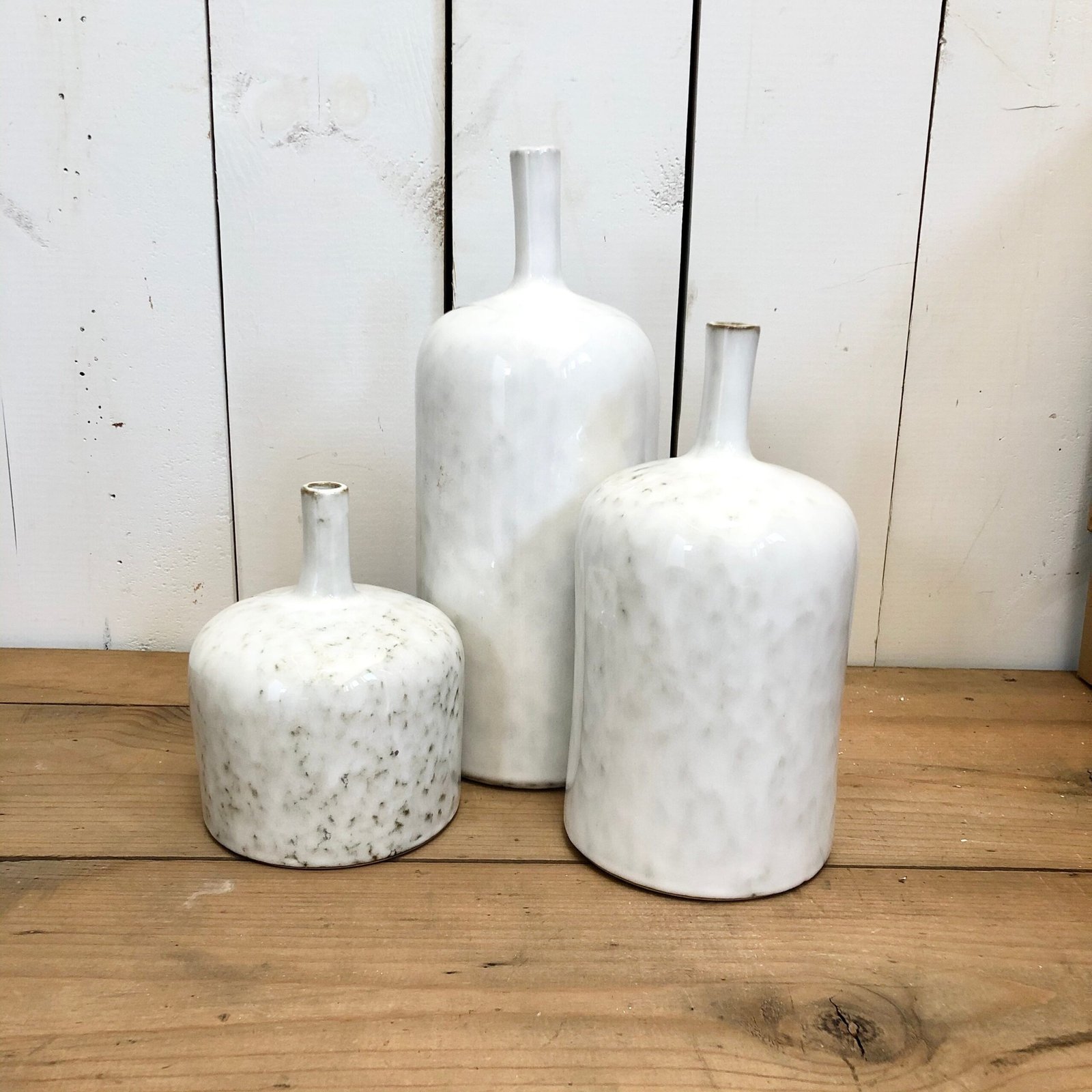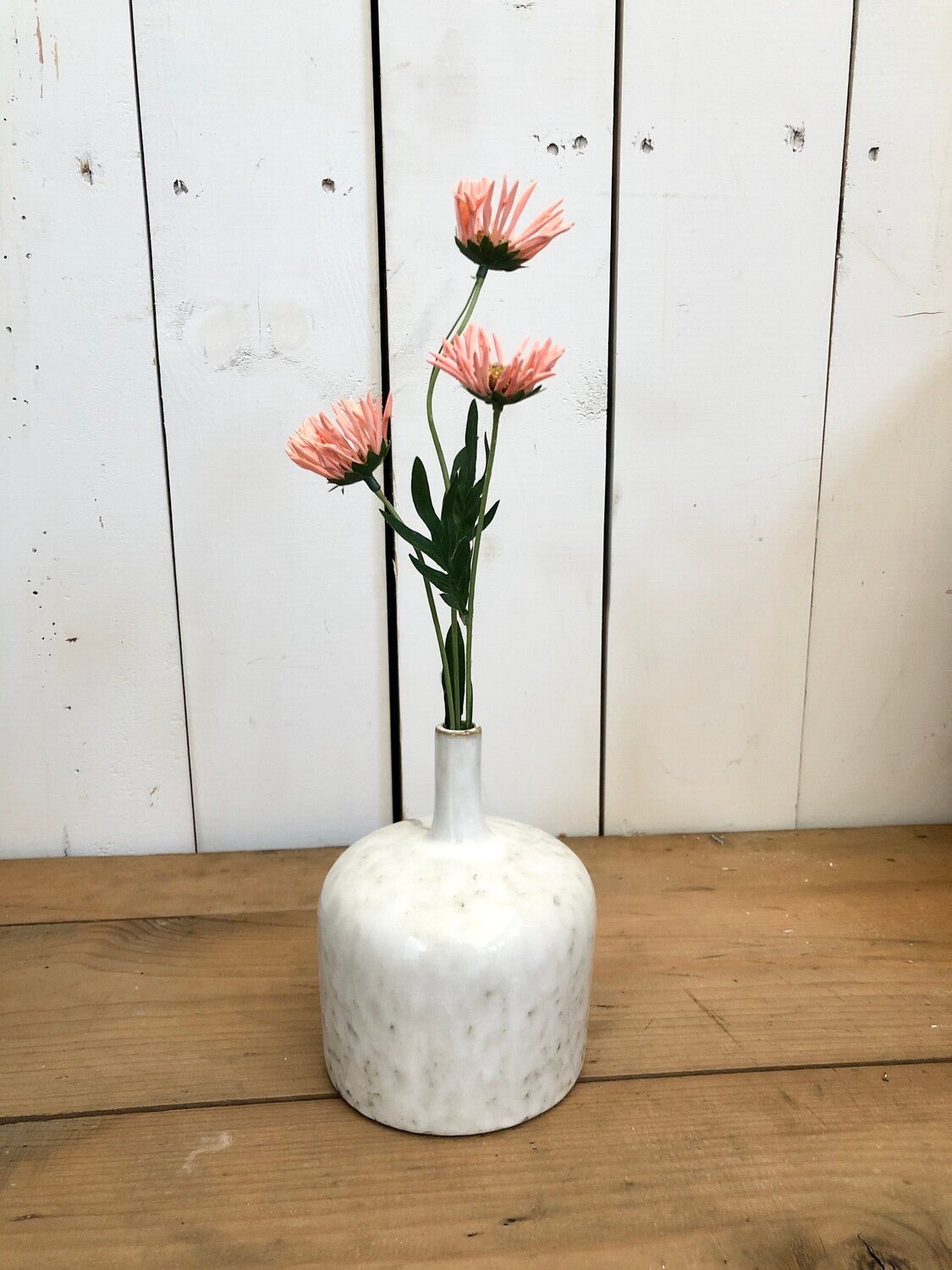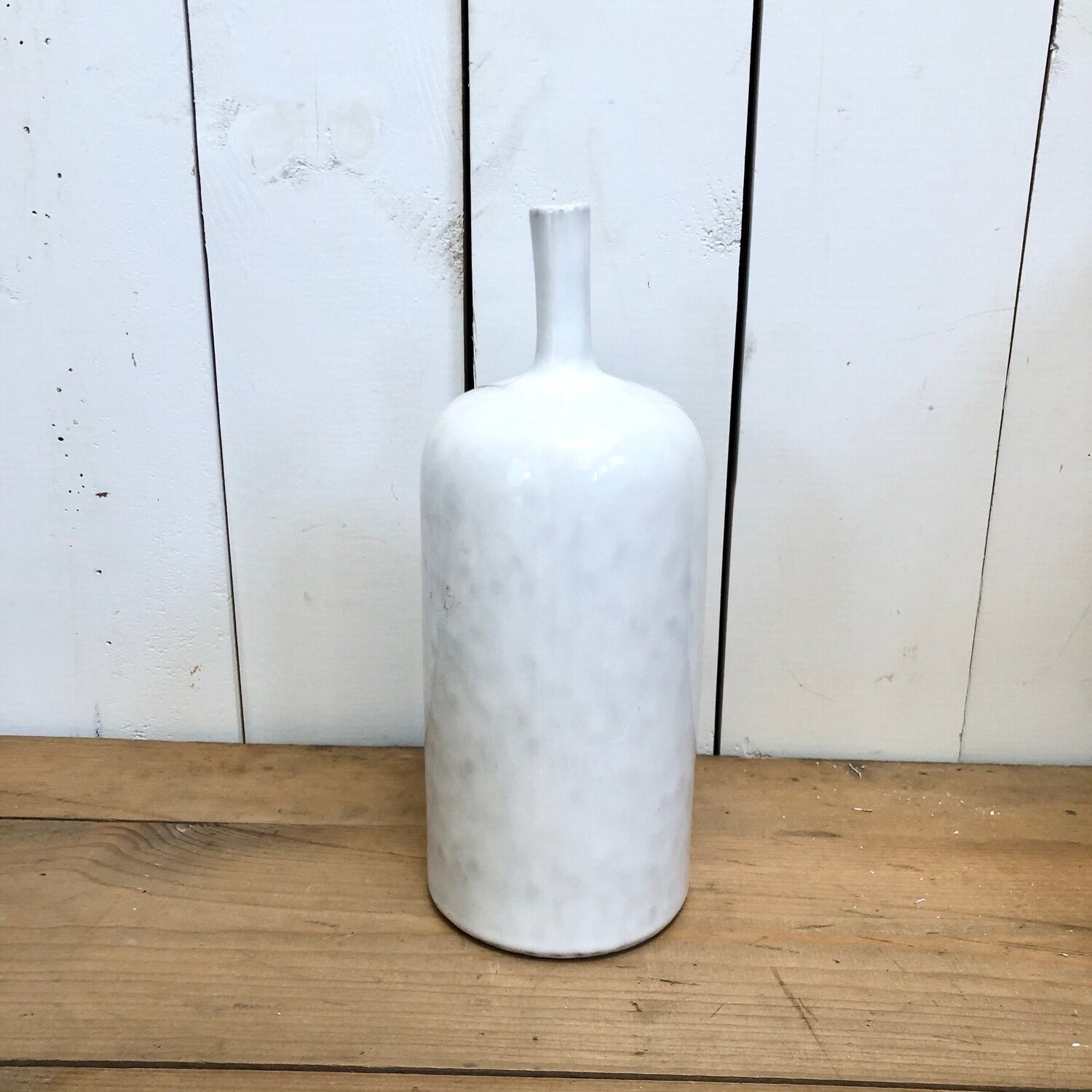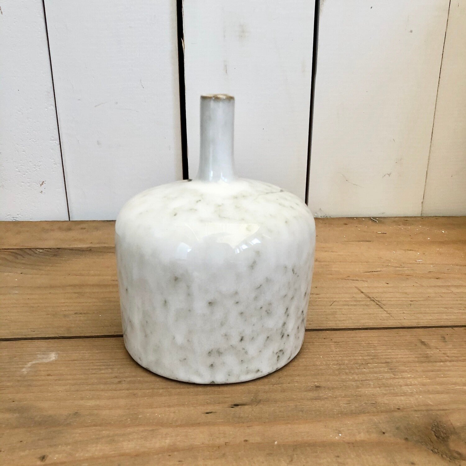 Stoneware Vase, Reactive Glaze, White (Each One Will Vary)