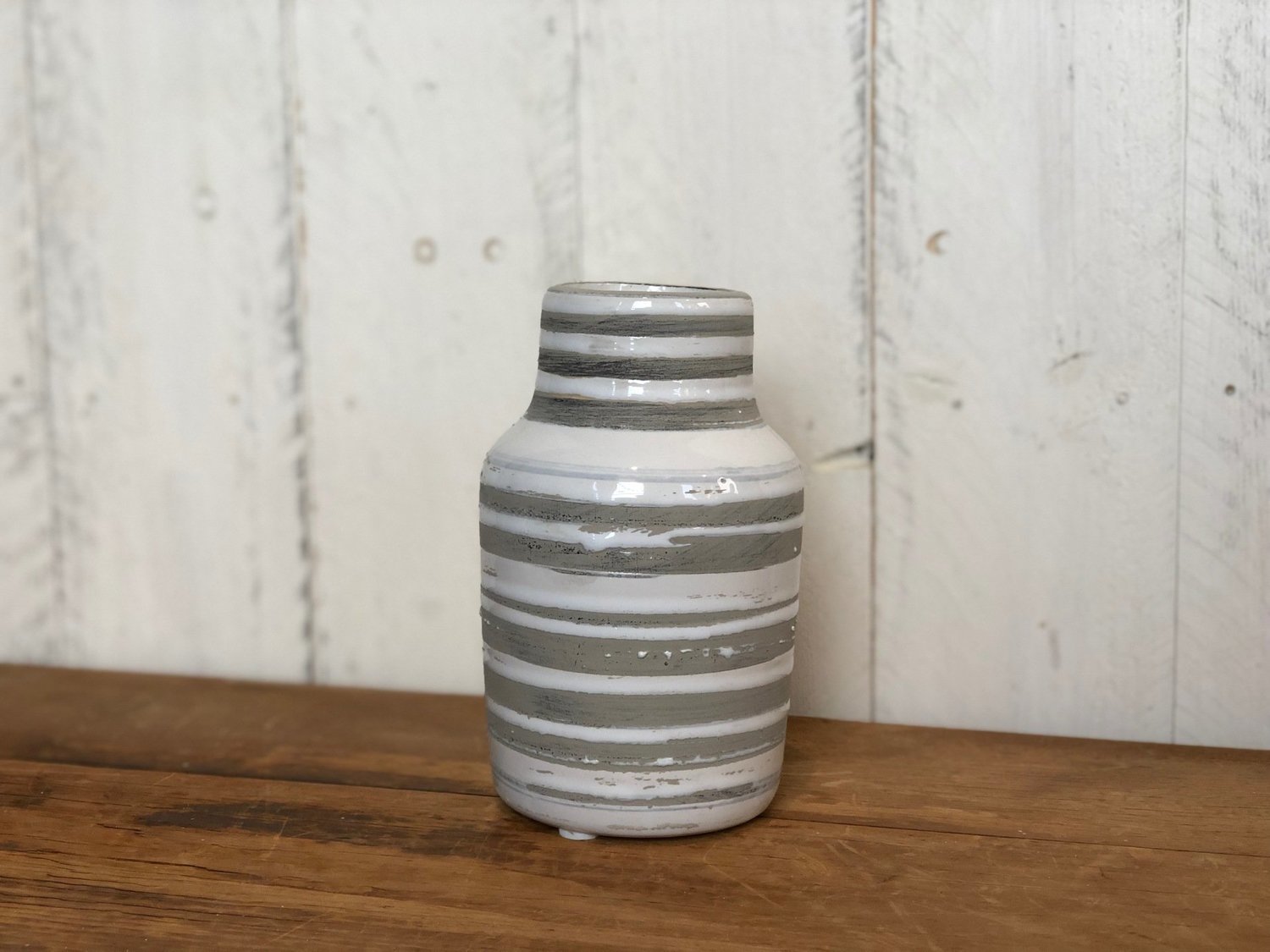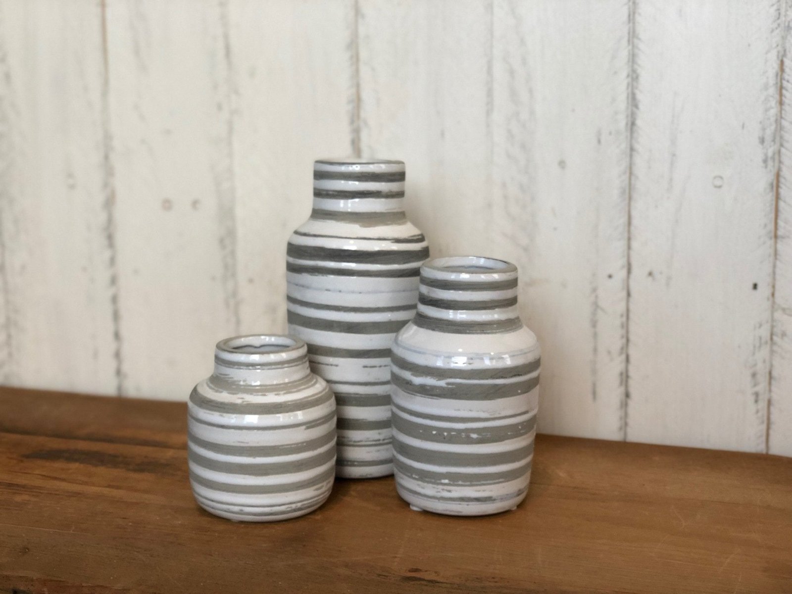 Let these white and grey ceramic vases inspire creativity in your home. Pair these great pieces with our everyday greens to add a touch of color to your living space. Sold individually.